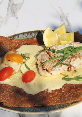 les saisons les huîtres, moules de bouchot, pommes de terre primeur, poissons et crustacés issus du travail des coopératives de producteurs de Noirmoutier.